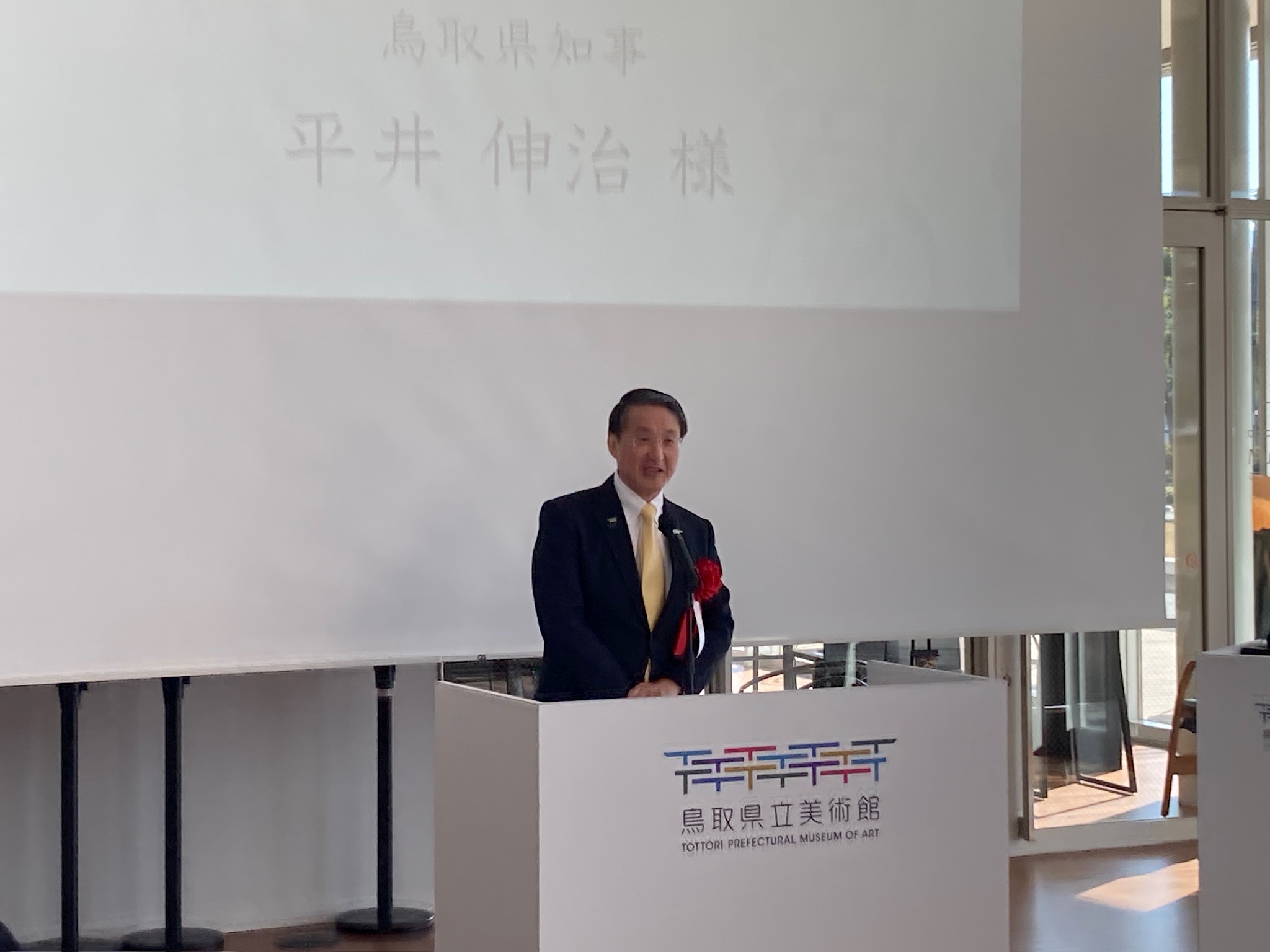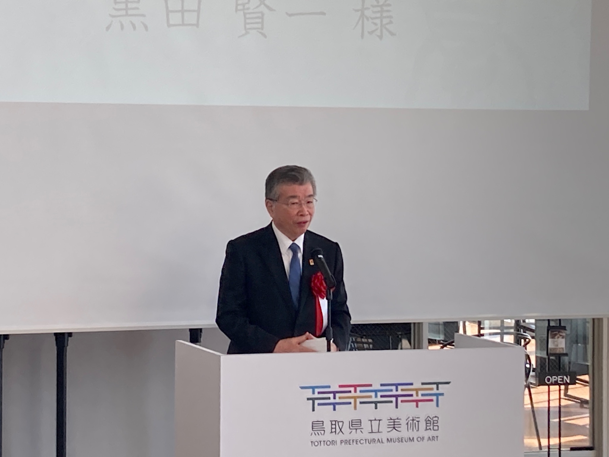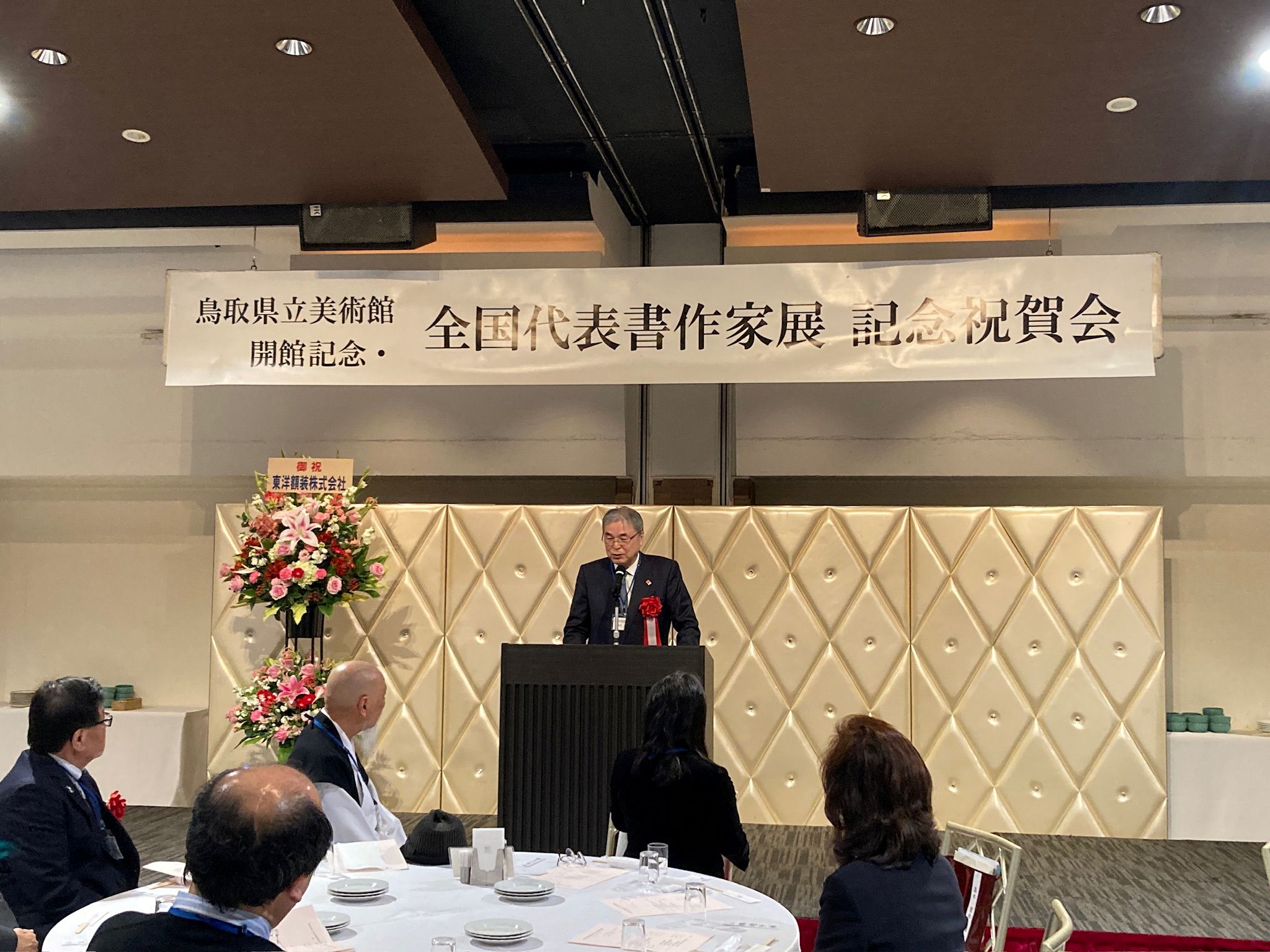 初日に開催された開会式では、主催者である柴山抱海鳥取県書道連合会会長のあいさつの後、来賓として平井伸治鳥取県知事、広田一恭倉吉市長、日本書道文化協会の黒田賢一副会長が挨拶をしました。